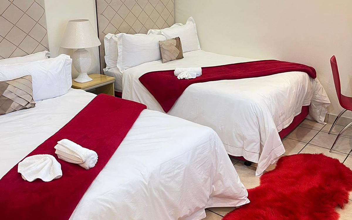 Bishops Wing is situated on the owner’s property and is ideal for families with young children. This suite has two separate rooms, private bathrooms, a small kitchenet for your convenience, two private balconies and a lounge which has been newly renovated with a door leading to the beautiful view of the garden. Main bedroom includes a king bed and a door that leads to the parking bay. Second room with queen bed.