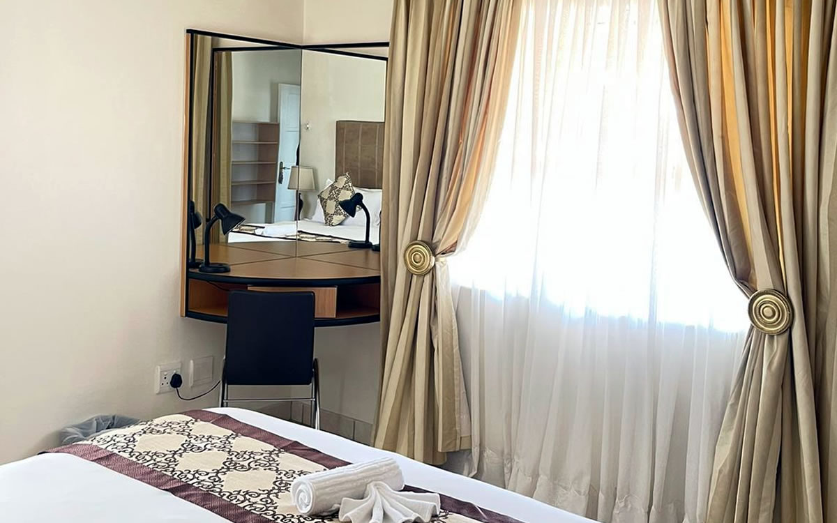 Bishops Wing is situated on the owner’s property and is ideal for families with young children. This suite has two separate rooms, private bathrooms, a small kitchenet for your convenience, two private balconies and a lounge which has been newly renovated with a door leading to the beautiful view of the garden. Main bedroom includes a king bed and a door that leads to the parking bay. Second room with queen bed.